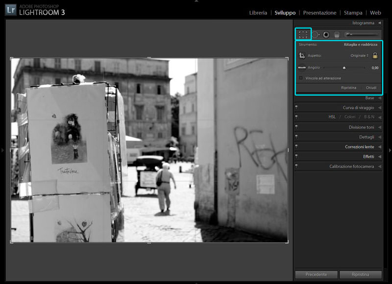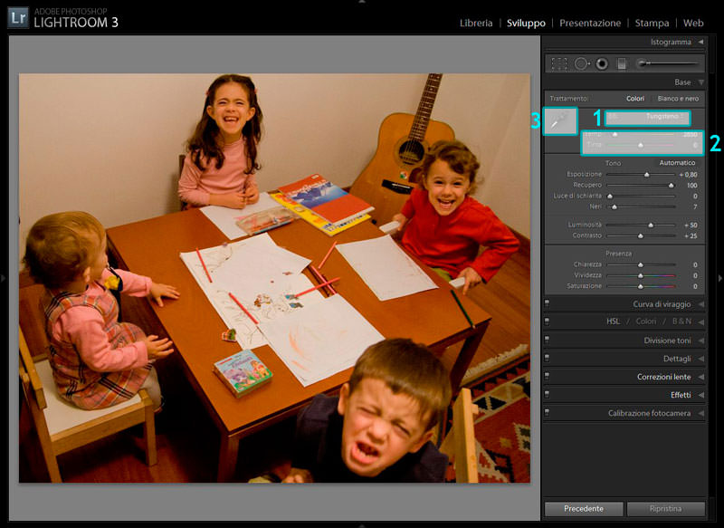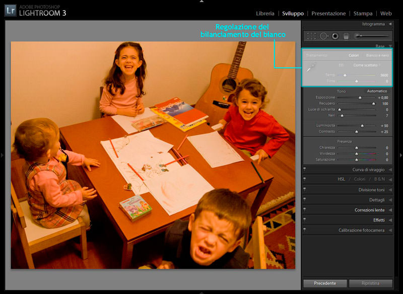 Con queste operazioni si può ottenere un bilanciamento del bianco preciso, ma non vuol dire che la fotografia sia migliore: il bilanciamento del bianco è una decisione creativa e la foto deve piacere a voi. Continuiamo con le correzioni dell'esposizione e del contrasto.